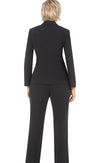 Stay polished and professional in the Giovanna Pant Suit S0740. This two piece pinstripe pantsuit boasts a notch collar, two buttons, and a modesty panel. Available in both Purple and Dark Navy, sizes 8-26W. Perfect for any business occasion with its sleek design and comfortable fit.