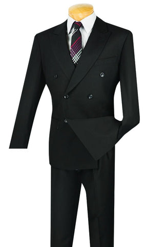 Double Breasted Slim Fit Men Suit SDB-1 Black