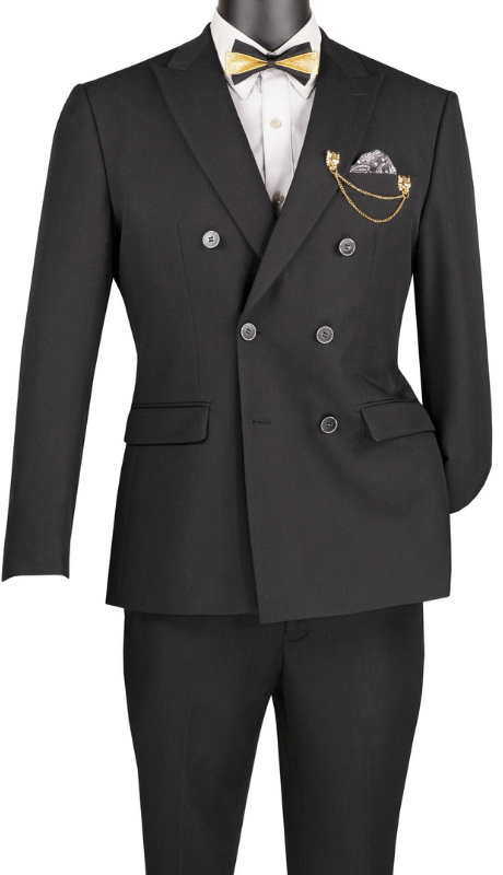 Double Breasted Slim Fit Men Suit SDB-1 Black