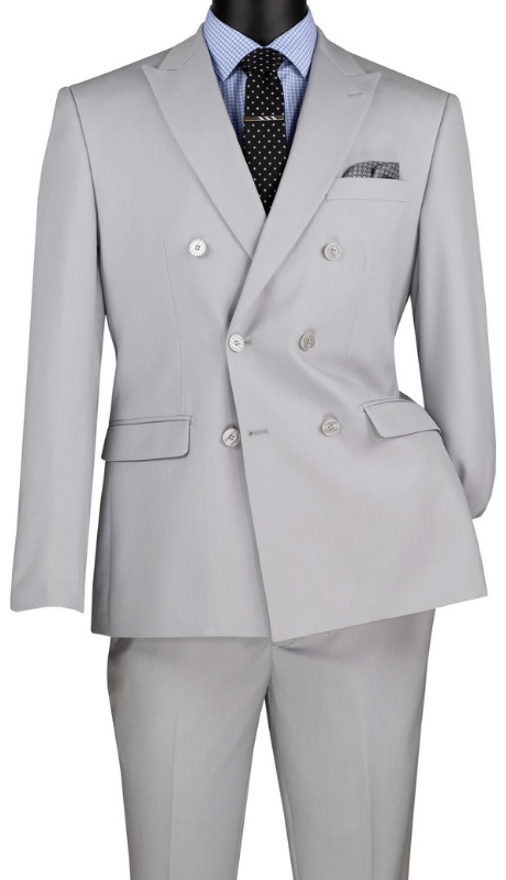 Double Breasted Slim Fit Men Suit SDB-1 Silver