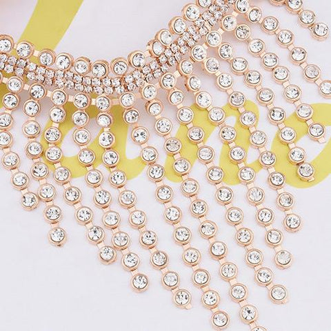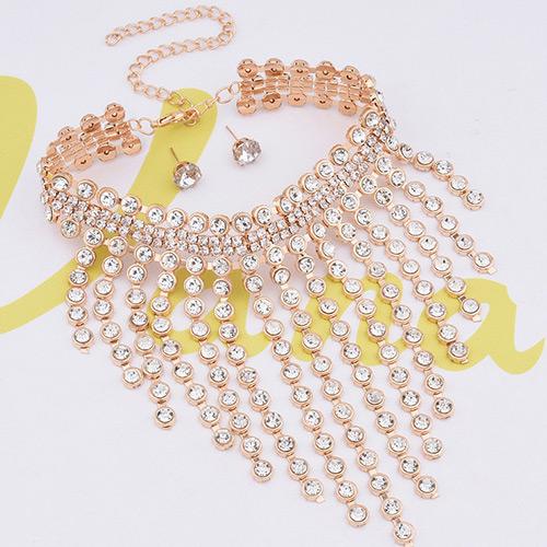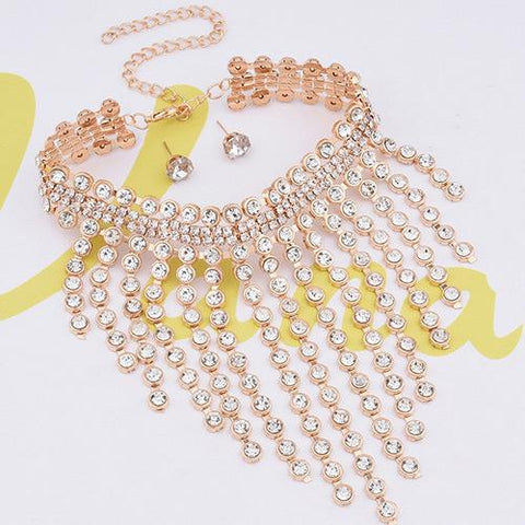 Sophisticated Gold Color With Falling Diamond Decorated Long Tassel Design Women Jewelry Set.