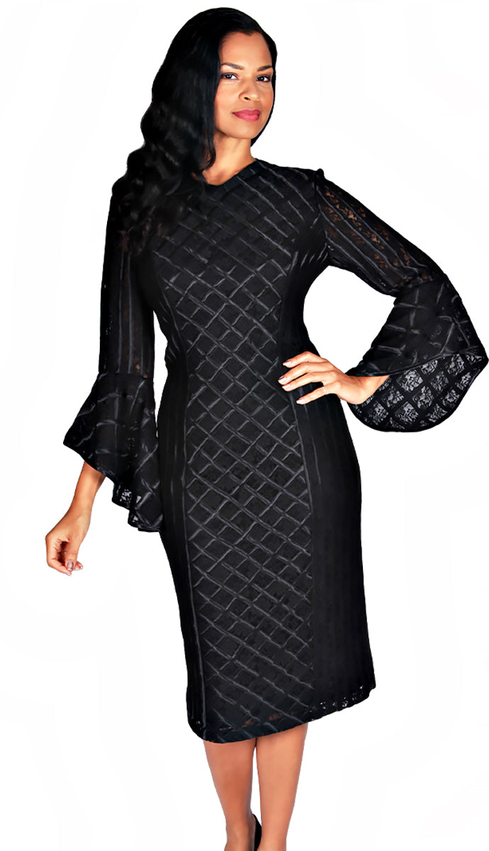 • V-Neckline diamond pattern dress with flared sleeves