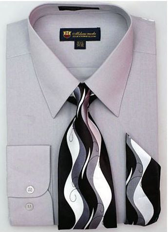 Men Dress Shirt SG-21-Ash Grey is a perfect wardrobe item for the modern man. This stylish and contemporary piece features a matching tie and handkerchief, making it a convenient and effortless choice for any occasion. Put together the perfect look in a flash with this essential men's dress shirt.