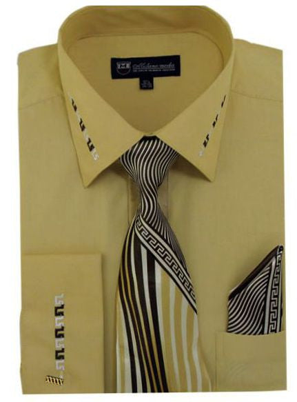 This men's dress shirt is perfect for any formal occasion such as church, work, or a business meeting. It comes with a matching tie and handkerchief for a sophisticated and polished look. The SG-35-design is sure to make an impression.