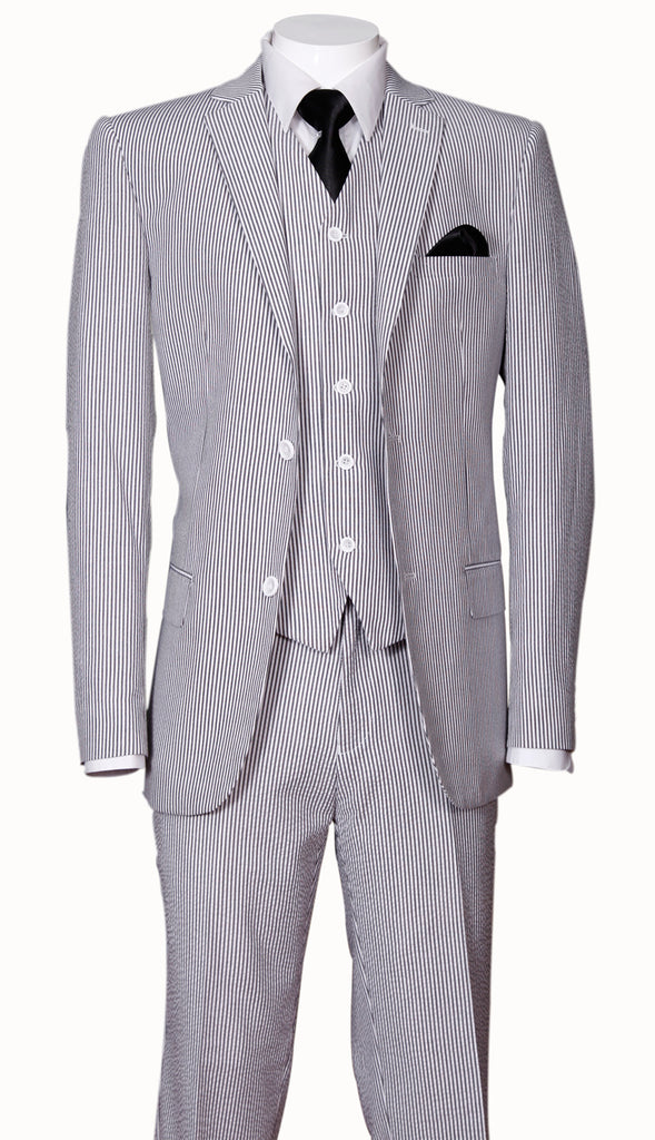 • Seer-Sucker Fashion Stripes 3-piece men suit