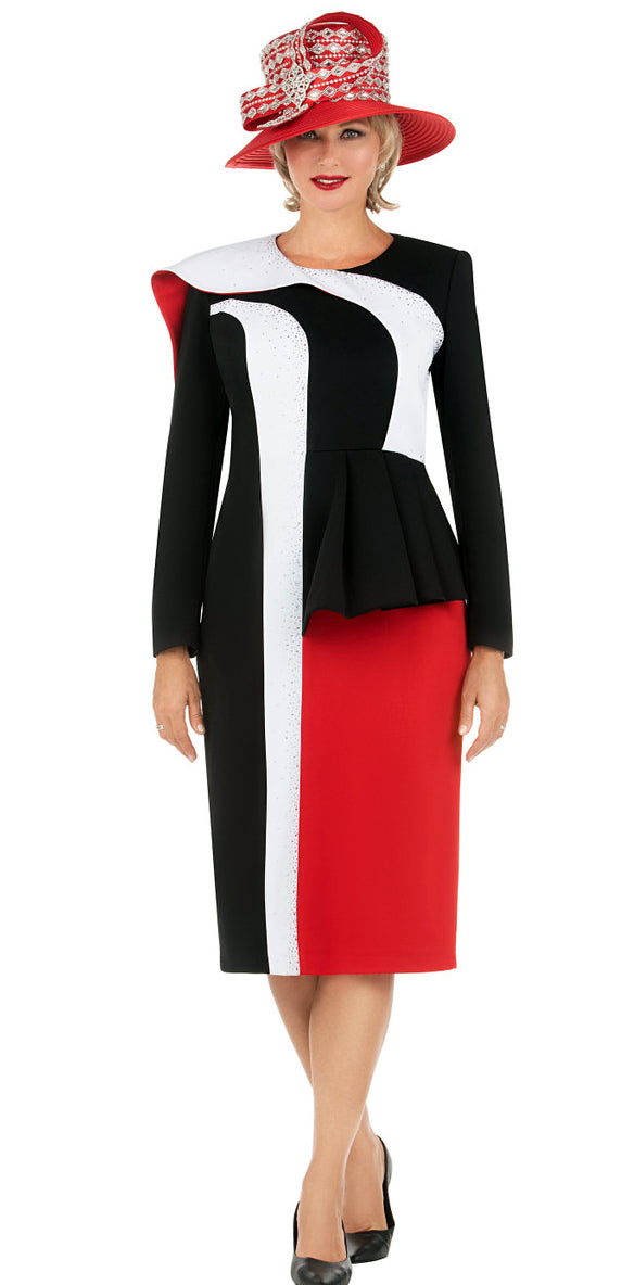 Expertly designed for special occasions, the Giovanna G1185 Dress from our Special Occasion church Dress Collection features a stunning color block scuba design with side pleats. Available in sizes 8-18 and 16W-24W in the sophisticated color combination of black, red, and white. Elevate your style with this beautiful dress.