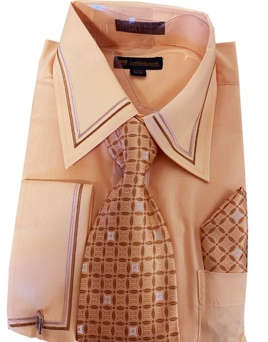 This men's dress shirt is perfect for any formal occasion such as church, work, or a business meeting. It comes with a matching tie and handkerchief for a sophisticated and polished look. The SG-22-design is sure to make an impression.