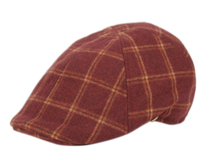 Great craftsmanship design, and innovation. A cross between a classic newsboy cap and pub cap, sewn together with 6 panels and a covered button, but with a slightly raised pub-style profile. Created from a blend of wool, alpaca and mohair, the Duckbill plaid pattern has a soft, brushed look and feel. Fully lined, classic good looks.
