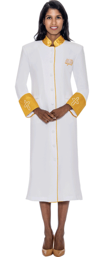 Elegant choir cassock robe that is comfortable fit suited for Women. Made with premium material that adds pleasingly stylish look, perfect for your Sunday service. This is crafted with attractive gold satin trim with front closure and mandarin collar. It is made with a high quality durable material that will last for years. It is available all year around.
