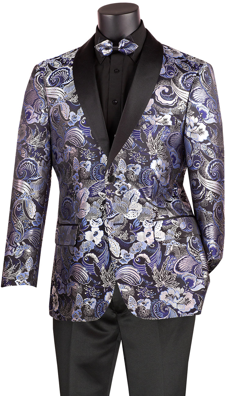 Upgrade your formal attire with the Vinci Sport Jacket BM-3 Navy. This modern fit single breasted jacquard blazer features a stylish shawl lapel, side vents, and flap pockets. Complete your look with the matching bow tie for a sophisticated touch, perfect for dinner or prom. MODERN FIT BOW TIE INCLUDED