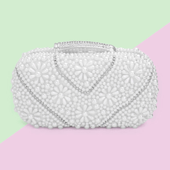 Designed to match our Subway Slingbacks and Hat 2623, this snappy little number boasts a patent “tile” pattern vegan leather, crystal florettes and a vegan patent leather back. A detachable chain adds versatility. Measures 10″ X 4″ X 2.5″ – large enough for phone, keys and of course lipstick! Matching shoes H140 and hat 2623.
