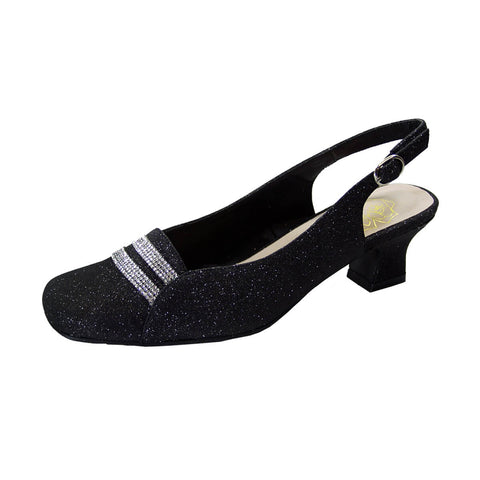 Classic women shoe .These slingback pumps feature a 1.5" low-heel, square toe, delicately embellished rhinestones, and a gorgeous texture that enhances this simple silhouette for that chic aesthetic. Great for ushering, church or any occasion.