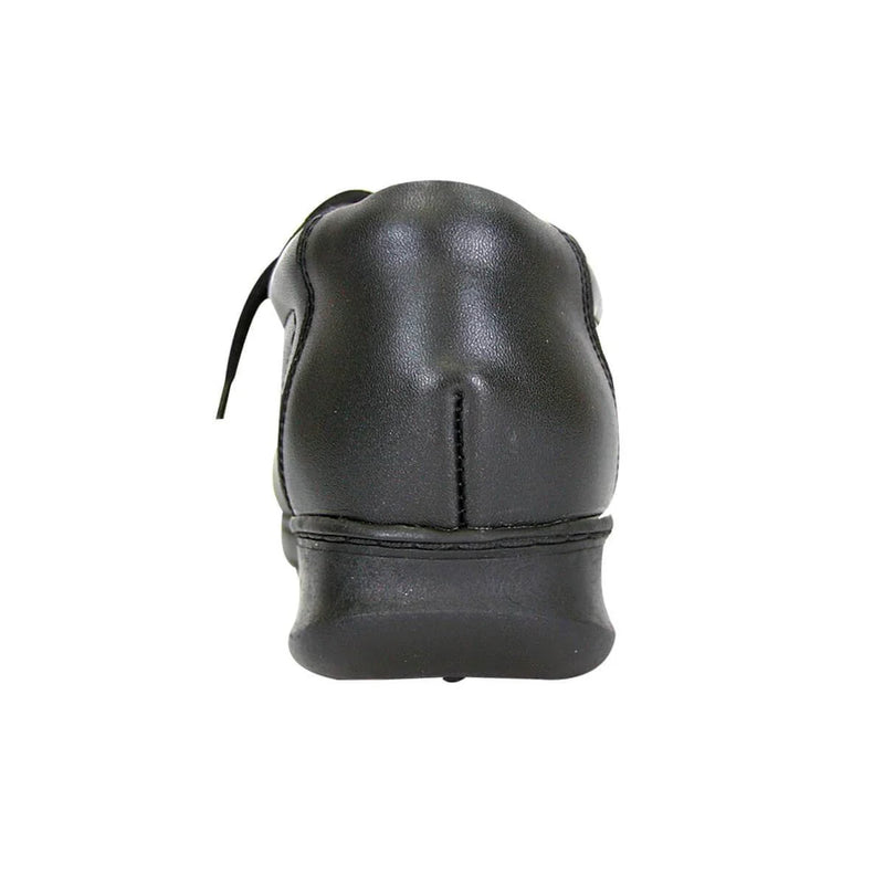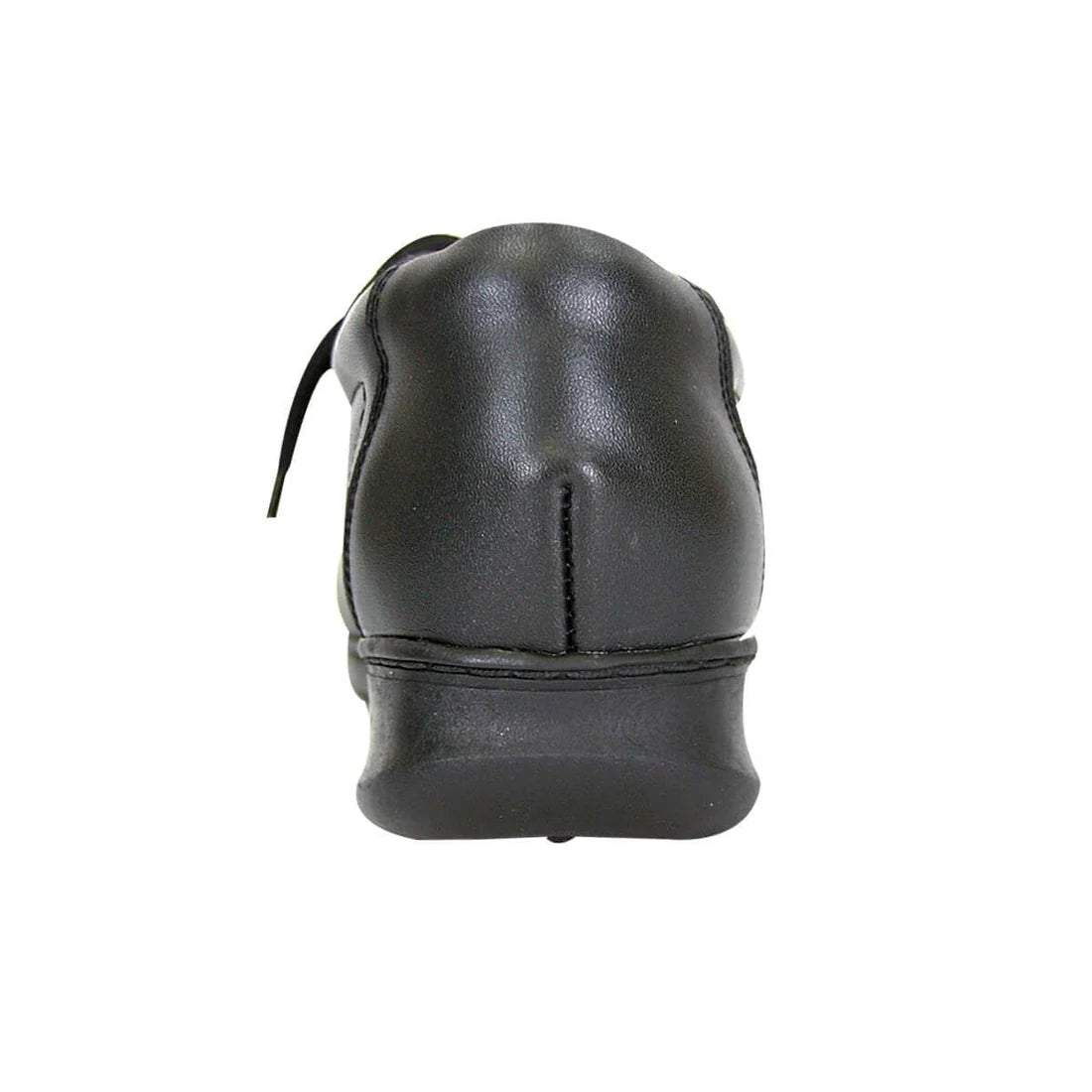 Walk comfortably for hours with Women Usher Shoes-1032 Black. This 1" low heel shoe has a cushioned topline and back counter, plus a rubber outsole for maximum traction. The leather upper ensures breathability and support, making it perfect for both professional and casual wear. And with an included extra insole, you can easily adjust the width for a perfect fit.